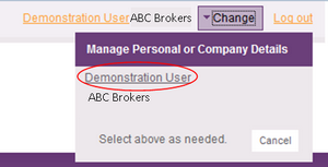 2. If it shows the company name, select "change" at the top right hand of the screen. In the drop down box select your name. This will allow you to see your personal details.